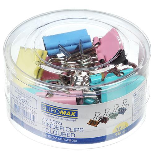 Біндери Buromax кольорові 19мм за 12шт. в тубі BM.5355 (12)