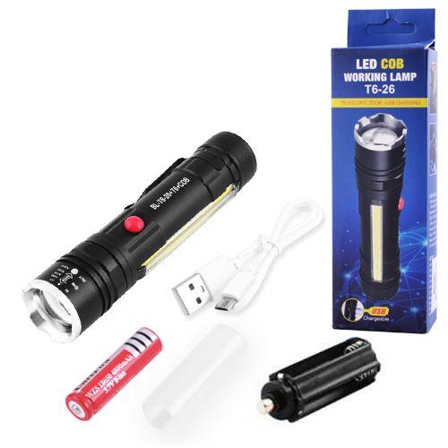 Ліхтарик в кор. акум 1x18650/3xAAA, microUSB "Police" магніт. zoom. T6-26+T6+COB (1)