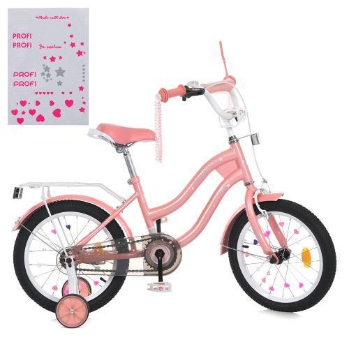 Велосипед 18" "Prof1 Star SKD75" доп. колеса. ручні гальма. ліхтар. багажник рожевий MB 18061-1 (1)