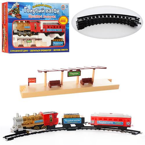 Залізниця в кор. на бат. "Блакитний вагон" 282см. дим. музика. світло 49*29*7см. 7013/609 (12)