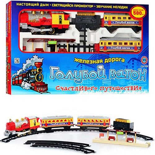 Залізниця в кор. на бат. "Блакитний вагон" довж. колії 580см. дим. музика. світло 61*36*8см 7016 (8)